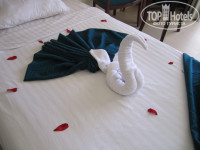 Пару слов про уборку номеров. Нам попался хороший парнишка Мохаммед, сразу по приезду познакомился с нами, очень общительный и милый. В номере всегда было чистенько, убирал каждый день и несколько раз делал красивые композиции из полотенец на кроватях. За это мы оставляли ему шоколадки или 1 дол.