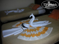 Размещение: Абсолютно все номера имеют красивый вид из окна, т.к. выходят на бассейн. Заселяют быстро, никакого вымогательства "за хороший номер" со стороны сотрудников. Сам номер тоже очень даже приличный: хорошая исправная сантехника, аккуратная мебель, есть эл.чайник и всегда пополняется запас чая, кофе и сахара, тв, холодильник с б/а напитками по приезду а каждый последующий день по бутылке воды, сейф исправный ничего не пропадало, есть фен.