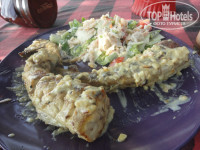 Питание. Претензий нет. Я вообще дома не завтракаю. Мне хватало фруктов, лепёшек, сока и молочного коктейля. Ужинала несколько раз в Ресторане. Вкусно. Не понравилась только свинина (в основном сало со шкуркой). Лепёшки обалденные за 30 руп! На пляже они по 70-80 руп. Буриани(плов)с креветками на двоих, лепешка, пиво – 445 руп. Это всего 276 рублей!Специи жгут не долго,запивать,как в Тайланде не надо, закусите просто лепёшкой. Средняя цена блюда в ресторане – 335 руп. Порции немаленькие. В «3 поцелуях» ела акулу» (+),крабовый салат(+),шок.коктейль(-) – 610 руп. «Зумбрай» - салат с тунцом, королев.креветки, суп крабовый, сок -590 руп. «SP» - суп из морепрод., лепешка, салат морск.,сок – 410 руп.; Лобстер-2100 руп.(заказ заранее). «Gi-Gi park» - курица в йогуре, лепешка, сок -335. На мой взгляд везде очень вкусно, потому что всё свежее, но лепешки за 30 руп. самые дешевые и самые вкусные в отеле!По поводу инфекций не бойтесь.На 2-3 день уже забывали руки протирать.Лёд тоже безопасен.Дома желудок реагирует на всё подряд(сок,фрукты,молоко).Пропила Хилак-форте перед отъездом и никаких проблем.Может потому,что там всё свежее и натуральное?