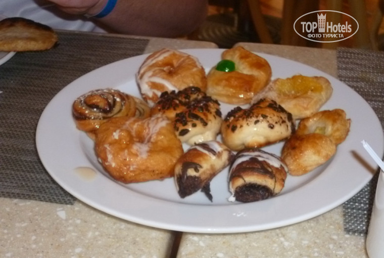 В первые дни мы очень радовались нашему ресторану,разнообразию. В каком то отзыве читала,что плохой завтрак,вот что ребята: Завтрак отменный,очень большое количество булочек,яичница,сосиски,хлопья и тд...не найти,что поесть невозможно!!! Мы ходили на море всегда пешком (минут 10 тихим шагом),много мест где можно сфотографироваться и несколько дней подряд обедали в других отелях. В Парадайзе нам совсем не понравилось,вот там действительно есть в обед нечего,в Эмиральде еще более или менее. По сравнению с нашим родным топазом остальные отели отличались скудным разнообразием мяса и противными супами.