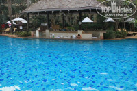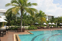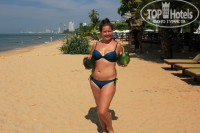 Территория отеля небольшая, утопает в зелени. Три больших бассейна, в которых купались до поздна. Лежаки на пляже стоят под пальмами - замена зонтиков. Сам отель очень тихий и спокойный (релакс). В 21.00 уже можно ложиться спать! В первый день приезда, когда мы вечером увидели людей в халатах у бассейна - подумали, что это какой-то пансионат!!! Потом мы поняли - что это настоящее счастье, когда возвращались поздно из шумной ночной Паттайи. До Паттайи добирались на тук-туке за 20 бат, по городу 10 бат. Вечером после 22.00 тук-тук превращается в такси - тут уж как договоритесь: можно и за 500, можно и за 250 уехать. Причем из города проще добраться, чем в город.