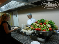 РЕСТОРАН. Абалдеть! Все вкусно и много! Фрукты были – арбузы, дыни (зеленые, но сладкие), алыча (зеленая, кислая), абрикосы и нектарины (вкусные), яблоки, апельсины (Очень вкусные!). Форель копченая (пальчики оближешь! брали в номер с пивом - во!!!), форель и еще какая-то здоровая рыба (сантиметров 50) - вкусняцкие, мясо (барашек, индейка, курица, телятина) - выше всех похвал! Попробуйте торт-суфле! Отойти не могла – как мороженое - тает во рту! Ох, слюнки потекли))