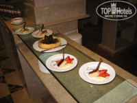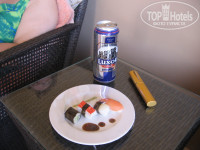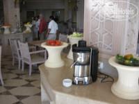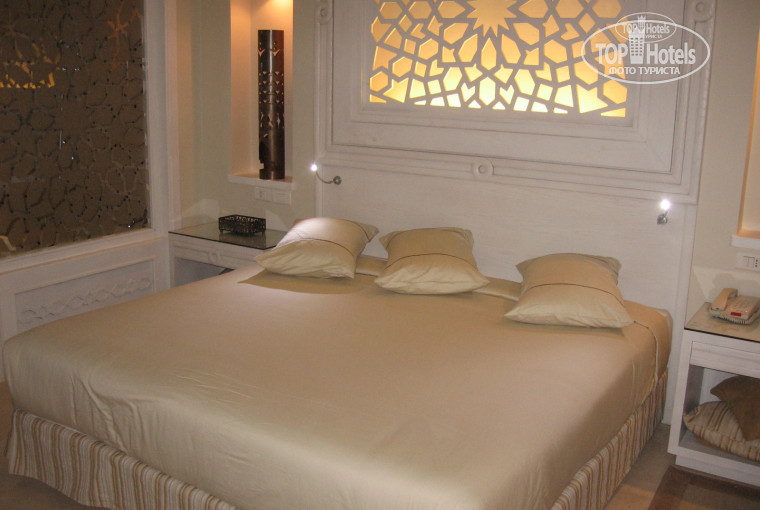РАЗМЕЩЕНИЕ. Встретили нас с холодными полотенцами и коктейлем, заполнили бумажку на заселение, русскоговорящий менеджер сказал, что если мы хотим номер с видом на море, то надо доплатить. Мы отказались, и нас поселили на 0 этаж (6013), т.е на первый и северная сторона. Это они практикуют со всеми. Поскольку мы приехали вечером, то только утром поняли, как в номере темно, а так хотелось солнца! Пришлось переселяться с доплатой. Дали номер на 3-ем этаже с видом на бассейн и море с огромной лоджией. Внутреннее устройство почти всех Джуниоров одинаковое: сначала открытый шкаф с сейфом и ванной комнатой напротив, потом огромная кровать, далее перегородка с большими декоративными вазами, а за ней мягкий угловой диван, журнальный столик, напротив комод с мини баром (2 бутылки воды по 0.5л, 2 банки пива Луксор по 0.5л и 3 бутылки разной газировки по 1л - пополняют ежедневно), на нем большой плазменный телевизор с 3-мя русскими каналами, далее выход на лоджию. Здание построено в дворцовом стиле, поэтому несколько видов лоджий:есть поменьше, есть огромные. На лоджии два плетеных кресла с подставками для ног и стол с двумя креслами. На некоторых есть лежаки с зонтиками, на других еще дополнительно диван. В ванной комнате два умывальника, фен, шампунь, гель, крем, мыло, шапочка для душа, крутящееся зеркало;за одной стеклянной дверью (стекло матовое)ванна, душ, за другой туалет и биде. Полотенцев много, пляжные лежат в сумке, вечером их меняют в номере. Так же каждый вечер разбирают кровать и приносят тарелку с угощением-каждй день разное. Убирались хорошо.