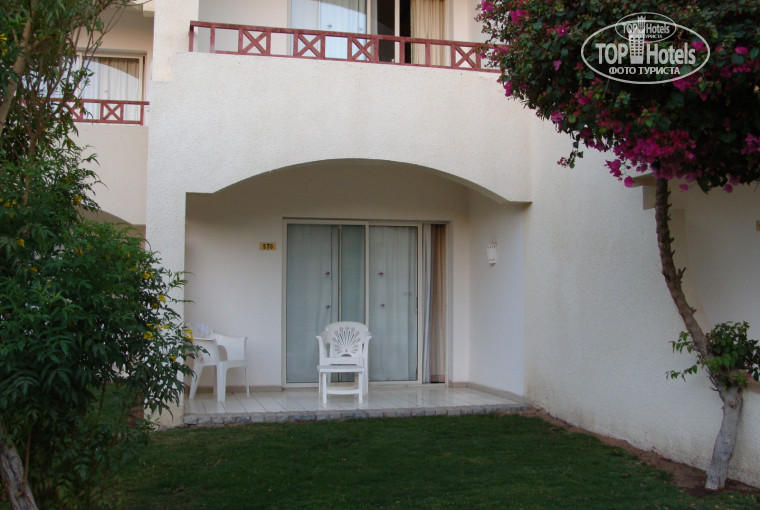 Прилетели в Шарм в 11 часов. Ехать до отеля минут 15. Заселили сразу, не дожидаясь расчетного времени. Милая улыбка на ресепшн - и отличный номер на 1 этаже с видом на сад в нашем распоряжении. Номер просторный, две двухспальные кровати, классный балкон с выходом в сад. Очень удобно было по утрам выходить через балкон в бассейн и плавать вместо зарядки.