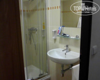 Теперь про спортзал при отеле. По-чешски posilovna. Разовое посещение по времени не ограничено, стоит 80 крон. Карточку-ключ от номера оставляем в залог администратору, получаем ключ от шкафчика. Поднимаемся на второй этаж в раздевалку. Откуда уже как настоящий пан-спортсмен :) поднимаемся в сам зал на 3 этаж. Зал, надо сказать, слегка разочаровал. Тесноват и любительский он какой-то. Судя по набору тренажеров и весов ориентирован в основном на девушек. Но для поддержания формы сгодится. Неполный набор гантелей. Из штанг только один малый кривой гриф и один прямой в составе тренажера для жима лежа и в наклоне. Поприседать со штангой не получится (стоек со свободным грифом нет). Много чего в общем нет. Но проявив немного русской смекалки, приспособиться все же можно. Тренажеры не совсем новые, но все исправные. Фотки вот что-то я не допетрил сделать... В общем за спортзал ставлю Ольшанке честную троечку. В полной мере соответствует понятию "удовлетворительно". Есть над чем поработать, чтобы довести его до ума.