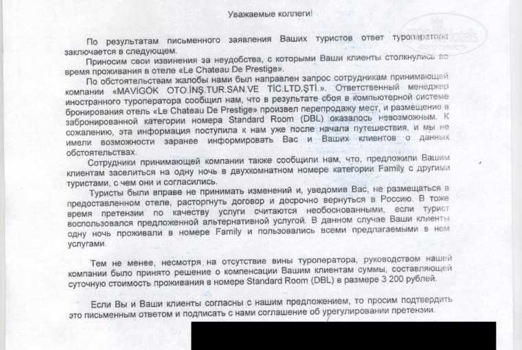 Мы вернулись в Россию - написали притензию и туроператор предложил компенсацию (которую кстати я так и не получил - лень ехать).