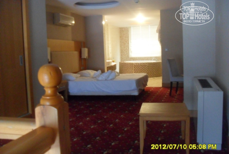 1. По прилету нас встретили представители анекс-тур, ребятам респект-сработали хорошо. Встретили отлично, по дороге к отелю скучать не давали. Рассказывали про Турцию, показывали по дороге интересные места которые мы проезжали. По приезду в отель долго ждать не пришлось (были в отеле примерно в 22.00), заполнили анкеты. И нам предложили номер с джакузи, хотя мы бронировали стандарт с видом на море. Мы решили посмотреть. Не много доплатив, нас заселили в отличный двухэтажный номер с видом на горы, и мы не пожалели. Вечером тихо, и так классно посидеть на большом балконе. Мы простая пара из Московской области, мы от этого номера были в восторге. Два этажа в твоем распоряжении. Все работало отлично (и душ и кондиционер). В общем- не могли нарадоваться. Да, согласна, уборки не было, кроме выноса мусора). Но мы там только спали, и даже не успели намусорить. ))) Поэтому за сервис 4.