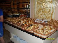 Наверное самое наболевшее для многих. Сразу скажу – меня питание устроило. Завтраки однообразные, но выбор есть: хлопья, йогурты, каши, яичница с помидорами, просто вареные яйца, изумительная выпечка))). Обеды, ужины отличные. Не понимаю, почему мясо кусочками – это не мясо??? Отличное мясо – курица, индейка, баранина, телятина. При нас были шашлычки маленькие, и грудка на гриле целиком. Рыба раза три была точно. И много овощей – кабачки, баклажаны тушеные, цветная капуста, брокколи). Вот салаты совсем не понравились, но и без них можно хорошо поесть. Фрукты по сезону – арбузы, сливы, яблоки двух видов, персики, виноград. апельсины. Вот выбор напитков– растворимый кофе, чай, разведённые юпи, кола, спрайт, фанта. Свежевыжатый сок за отдельную плату. Зато вода есть везде в бутылках, выносить можно). А вот как сладкоежка из десертов я почти ничего выбрать не смогла, не оценила я их сладости, но если честно, то до них дело и не доходило почти никогда.