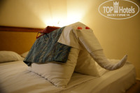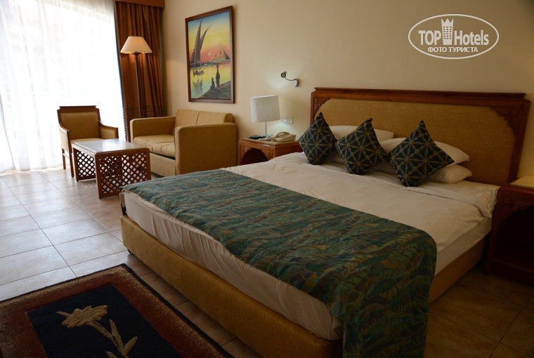 Для Египта - на 4-ку, так - на 4 с минусом. Достался номер с большой двуспальной кроватью, чуть староватой мебелью, чистой ванной комнатой и чуть "замученной" ванной. Да, претензии именно к ванной, такое чувство, что ее доделывали недели за две до нашего приезда. В номере бесплатный сейф, ТВ, балкон и минибар. За чаевые уборщик пару раз бесплатно ставил большую бутылку воды, но ее всегда можно бесплатно получить в барах. Убирают хорошо, делают всякие фигурки за $$$.