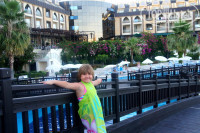 Наконец то и я нашла времечко поделиться своими впечатлениями о своем первом пребывании в Турции. Получилось все очень спонтанно...Пришли в турагенство нам предложили Ле шато и не читая отзывов мы купили тур за неделю до вылета...Конечно почитав отзывы порядком подрастроились. Летели с Пегасом, кстати он не подвел, все было во время...вылетели как положено. с трансфером тоже было все в порядке. Прибыли в отель в 13..00 и через 30 мин нас заселили. Номер устроил..все работало(грязный ковролин нас вовсе не расстроил)...вид с балкона на горы...Сразу отмечу пришлось много ходить...территория очень большая..если пошел на море что то забыл возвращаться в лом. Территория красивая ,ухоженная. Ооочень много бассейнов...два аквапарка, один возле основного здания второй возле моря (через мостик). Возле моря есть бар(можно перекусить) Бассейн для самых маленьких тоже имеется..