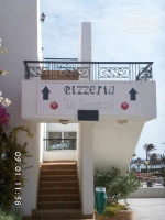 Есть пиццерия, она расположена на втором этаже бара возле моря.