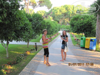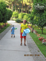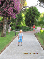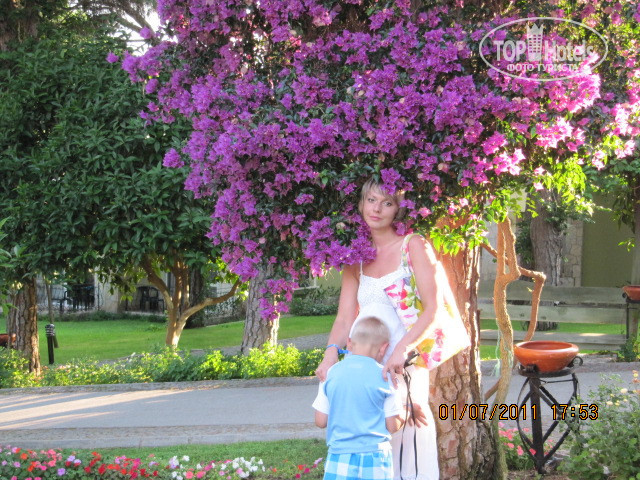 Этот отель тех, кто отдыхает с детьми, и для кого важна красота, которая вас окружает ( я не об архитектуре).К плюсам отеля можно отнести -1. Шикарное месторасположение в сосново - кедровом бору, среди апельсиновых деревьев, цветов, утопающий в зелени.Во время нашего приезда цветы в клумбах пересаживали, заменяя их на свежие, несколько раз в неделю. 2. Огромная территория, на которой каждый может найти себе место по душе, и если вы устаете от шума детворы, то просто держитесь подальше от аквапарка. Тот факт, что бунгало находятся в отдалении от ресторанов и моря я тоже считаю плюсом, потому что нет ничего приятнее прогуляться по аллеям, усаженным цветами и к тому же разгрузить организм от обедов - ужинов.При заселении очень хотели попасть в основной корпус3. Питание - достотчно всего, по крайней мере дома, несмотря на то что не бездельничаю, я не подаю своим мальчикам на выбор 10 блюд. И не надо навалиться на салаты с заправками из соусов и майонезов, их уже давно никто не ест даже в повседневной жизни, так что нечего жаловаться на очевидные вещи. В период нашего отдыха тунец, который я очень люблю, был регулярно и в изобилии. Возможно мне кто - то возразит, очевидно те, кто подходил к грилю с тунцом и закатывая глаза голосил : "опять какое - то непонятное мясо, что за однообразие". Питание практически круглосуточное, за 14 дней пребывания я так и не дошла до бара возле бассейнов, в которых перед обедом предлагают перекусить печеной картошкой в фольге, жареными куриными крылышками и гамбургерами. 4. Для детей огромное количество развлечений ( батуты, поездки с мини - клубом на банане, игры). Видела, что детки из мини клубов не выходят с самого утра и ими там усердно и доброжелательно ( что немаловажно) занимаются. Подробнее не расскажу, для моих детей веселее "выматывать" меня целыми днями, чем тусоваться с аниматорами. Спиртное - много не расскажу, мы отдыхаем большой семьей с бабушками и дедушками, которые предпочитают покупать "топливо" в дьюти - фри или привозят свою украинскую водку, но пиво и "махито" мне очень понравилось. Для деток "махито" предлагался безалкогольный.5. Официанты справлялись со всем даже в сезон, особенно если с чаевыми, они ведь люди, и это их работа, почему же их не поблагодарить, если они уделяют вам внимание и вы довольны. Вы ведь оставляете чаевые в тех местах, которые посещаете дома, и это в порядке вещей, почему же возмущаетесь не должному вниманию в отелях? 6.Территория пляжа - она огромная, широкая и чистая. Если вы обнаруживаете окурки по утрам, то это только потому, что выходите на море к 11.00, и наши соотечественники уже успели там побывать. Это вопрос культуры, а не персонала. К каждому курящему личного уборщика не представишь, тем более к тем, кто еще не вырос из возраста закапывания в песок продуктов жизнедеятельности. Курильщики обычные люди, и среди них, такой же процент невоспитанных как и среди некурящих. Поэтому мой совет - выходите на море пораньше, часиков в 07.00. Море чистое, вода прозрачная, полный штиль и тихая красота Средиземноморья.