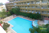 Прилетели 18 сентября 2012 в 6 утра, в отеле были в 7 часов утра, сразу переоделись в туалете в корпусе (слева) от входа в сам отель, тут же нас отправили на завтрак, затем за символическую плату нас заселили в номер на пятом этаже в третьем корпусе с видом на горы и море ( в 10 часов), кстати сами выбирали номер, предложений было где-то три разных комнаты. Вообщем заселение прошло хорошо.