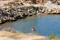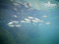 Пляжа как такового нет. Небольшая бухта отделена скалистым волнорезом, спустившись с которого попадаете на небольшой песчаный пятачок, где стоят несколько шезлонгов. Однако, любители поплавать с масками получат большое удовольствие: через несколько метров от пляжика начинаются рифы, вода там довольно чистая, и живности в спокойные дни очень много. Главное, купаться следует только в тапочках, купить которые, как и маски-трубки, можно прямо в отеле. Шезлонги бесплатные и у бассейна, и на пляжике.