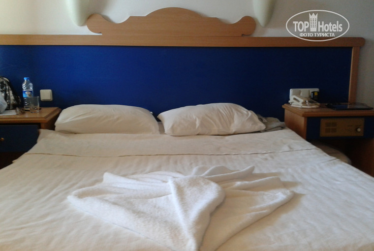 Отдыхали с подругой с 29.04.13 по 06.05.13. Все очень понравилось. Огромная, обустроенная, красивая территория отеля. При заселении могут заселить в корпус около ресепшена, а уж если на первый этаж - ОТКАЗЫВАЙТЕСЬ СРАЗУ (очень шумно от приезжающих), нас переселили без всякой доплаты и вмешательств отельного гида. Практически все номера рассчитаны для отдыха с детьми (одна большая комната с двухспальной кроватью, шкафом, телевизором, зеркалом и одна маленькая комнатка с кроватью полуторка и тумбочкой). В номере есть все (кондиционер, душ, балкон, телевизор, фен), но не кладут шампуни.