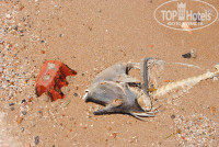 берег-битые кирпичи-колатая плитка-скелеты рыб-стаканы-трусы-пачка из под сигарет и пр и пр.