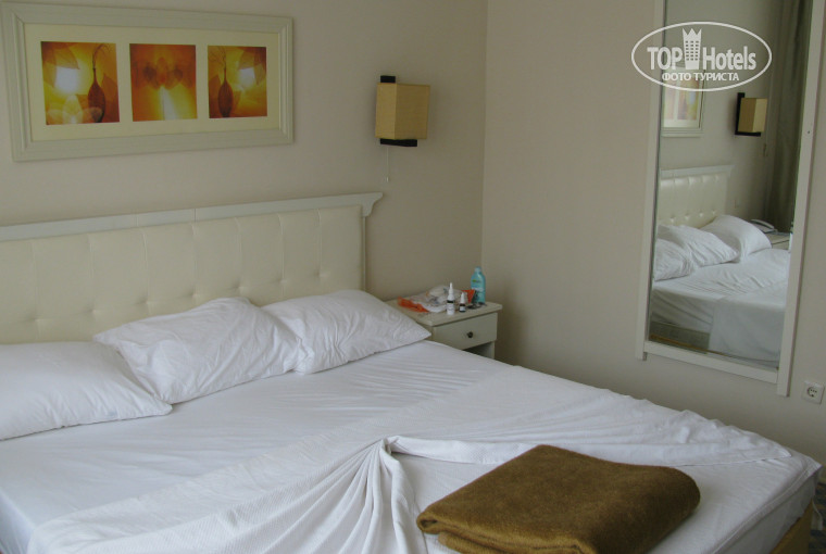 Номерной фонд старый. Все такое старенькое и проверенное временем, ковролин с пятнами совсем удручает. Жили в дальнем бунгало номер 1961 далеко от всей отельной тусы (тишина!!!!!). И слово далеко для отелей в турции вообще относительное понятие, от дальнего бунгало до всего идти 3-5 минут. В защиту номера- все работало, фен, телек, минибар моорзил хорошо))))))) Еще отличный балкон с видом на горы)