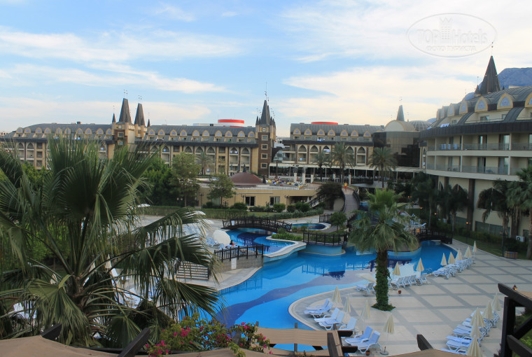 Территория отеля - красивая, большая,достаточно ухоженная, есть где прогуляться,огромное количество бассейнов, горок - действительно здорово : людей много,и места у бассейнов и моря всем хватает. Проход на пляж через лабиринты цветов и кустов и мостик .У моря тоже бассейн .