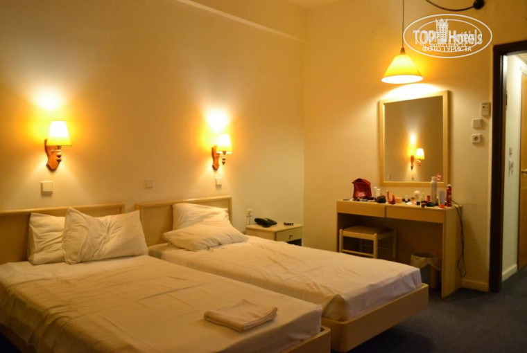 Освещение в номере очень слабое, тусклое (не впервые такое встречаю в отелях Греции): два бра над кроватями и один чуть побольше над зеркалом. В дневное время при открытых шторах нормально (минус - в окна заглядывают проходящие мимо отдыхающие). Вечерами очень не хватает света.