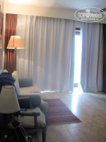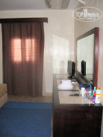 Жили в 422 номере, находился недалеко от «большого бассейна». Номер хороший, большой, сделан как "квартира", располагался на первом этаже, но фактически, если смотреть со стороны моря, то как на втором этаже, потому что нужно было к номеру подниматься вверх по лестнице. За входной дверью просторная веранда с лежаком и плетеной мебелью (кресла и столик), на стене сушилка для белья, очень удобно. Вход в комнаты с веранды через стеклянную дверь. Всего в номере две комнаты. Первая - гостиная, в ней шкаф, зеркало, диванчик (используется как доп.спальное место для ребенка), торшер, стул, тумбочка, телефон. Вторая - спальня, в ней большая двуспальная кровать, тумбочка, стол, зеркало, ТВ, холодильник -минибар (платный, бесплатно по приезду только 1 бутылка воды). В каждой комнате кондиционер, комнаты просторные. Ванная комната небольшая, хотя места было вполне достаточно, биде, душ, раковина, большое зеркало на стене и дополнительное косметическое зеркало с увеличением, фен, сушилка для полотенец и телефон. Вода в душе нормально текла всегда, напор был нормальный. В первый день не было горячей воды и отсутствовала шторка в душе, сообщили об этой проблеме на ресепшн и горячая вода и шторка появились, горячую воду в каждом номере отдельно включают/выключают... За день до отъезда «исчез» свет в "гостиной", т.к. перегорела лампочка в торшере, ну, что же бывает...., Об этом мы тоже сообщили на ресепшн, нам пообещали решить проблему за полчаса, но видимо посчитали не слишком «острой проблемой», тем более мы съезжали, лампочку нам не заменили, но нас это не напрягало, т.к. всё остальное электричество работало исправно. Что поделаешь, арабы.... и к этому надо быть готовыми, не стоит удивляться их лени и нерасторопности.