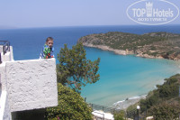 Интересный отель, и очень красивый вид на море!Он врезан в гору с соответствующими перепадами высот, например бассейн1 расположен на 4 этаже, а 2й (перед типа студиями) на 1,5 этаже к основному зданию. Встретили хорошо, сразу получили,что увидели в интернете! И Вид и горы! Известный Роман (от пегаса), провел на следующий день достаточно внятный ликбез и продал достаточное количество экскурсий (я расплачивался по рублевой зарпланой карте мастер. и вышло так же как в обменнике).Так как мы практически заезжали вообще на открытиие сезона, поэтому негатива поначалу не заметили.А вот потом( (с приездом посетителей) понеслось - то вино почему-то из бочки переливают в графин а потом уже наливают тебе, на обед кофе в баре приходилось закаывать, хотя до этого прекрасно сами справлялись, то шумим сильно ночью.Кормят в-общем-то неплохо, есть всегда несколько видов мяса, а овощи само-собой разумеется, в мае были арбузы и появились дыни Но если вы хотите попробовать местной кухни,рекомендую кафешки внизу в деревне (мы оставили свой выбор на таверне kavos), равно как и съем авто(кстати там халявный wi-fi и значительно быстрей чем в отеле: 20Э за 500 минут).В деревне банкоматов нет,но в местных маркетах карточки берут,правда неохотно.Экскурсии за углом вы сможете приобрести только в агиос-николасе (15 мин езды на автобусе 1Э.60) равно как и увидеть банкоматы.В принципе тихое и спокойное место, без тынц-тынц, но детям будет скучновато. хотя море им ТОЧНО понравится, песочек, плавное увеличение глубины.Спуск (крутой) богат цветами и сопутствующими насекомыми, а подьем (пологий через пляж) выводит сразу в деревню.Пляж платный,(они там все городские) но за лежаки(2.5Э) и зонтики(2э) платить ни разу не пришлось. Анимация была по субботам и воскресеньям, но не сильно впечатлило.Убирались каждый день, белье меняли 2 раза за 10 дней.Отличная а кустика внутри отеля! Слышно все! Отель оставил о себе двоякое впечатление, поставил бы 3+, но ставлю 4+ за пляж, чистоту, ВИД на море, и необычность расположения.