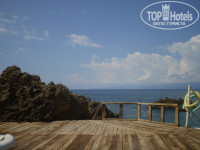 Отель - бюджетная тройка, ничего примечательного.Не красивый. Территория не обустроена: всё поросло бурьяном и травой. Кафешка на улице напоминает придорожные кафе гденить в Абхазии с некрашеными стойками древнего навеса и битыми плафонами светильников. Спиртное безбожно разбавлено, даже вино. Пиво, если из кегля - потянет на балтику2, если из бутылок - даже не рекомендую пробовать. Свозь кусты можно полюбоваться на море и горы на другом берегу залива. Голый неуютный пятачок с бассейном с холодной хлорированной водой. Есть баня, массаж и хамам за отдельную плату. Остальное, что написано здесь про инфраструкткру отеля - может когода-то и было, но сейчас умерло. Анимации нет, музыка одинаковая каждый день. Хотите другую - можете привезти с собой на флешке или диске - ребята-бармены с удовольствием её вам поставят.