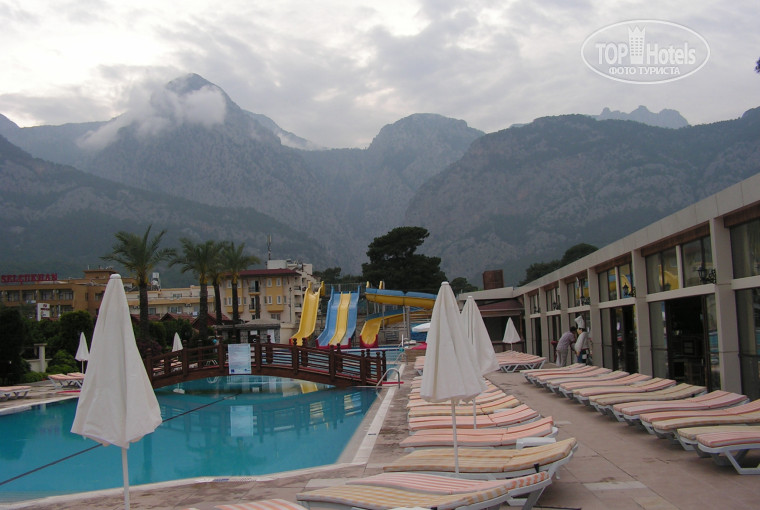"Кто зачем приехал"-эта фраза сопровождала меня на протяжении всего отдыха))))))))начну с самого начала. в турции я отдыхала впервые.путёвки мы заказали через всем известную компанию tez tur,представители которой должны были нас встретить в аэропорту сначала львова а потом анталии и сопроводить до отеля в итоге мы бегали по аэропорту друг за дружкой и не знали куда идти.разобрались ,долетели слава богу!!!наш отель оказался первой остановкой.выходим и автобуса,впечатления так себе...всё простенько....идём на ресепшн -а мест нет!!!!ждали два часа в итоге с боем проблему решили....предупреждаю сразу ждать чего-то не вероятного не стоит ,обычные,простенькие номера.и это был первый раз когда я вспомнила фразу "кто за чем приехал"потому что в номере за сутки мы находились максимум часа 2,ну и соответственно приходили поспать.дальше...мы привели себя в порядок и пошли осматривать территорию отеля...и тут моё настроение поднялось...территория отеля просто шикарная,прямо возле моря,вокруг абалденные горы,всё чистенько и очень красиво.большой плюс подземный переход от корпусов до пляжа и самой территории где находятся рестораны,бары,амфитеатр,бассейны,водные горки,детский городок,зелёная территория,теннисный корты и многое другое. получается что отель поделё на две зоны спальная и активная и это большой плюс.вечерняя дискотека проходит рядом с нашим отелем и тоже ничего плохого в этом не вижу-диско просто супер,вход бесплатный.питание,тут конечно маленький нюанс,кухня своеобразная,но если честно хотела похудеть не удалось+2,5кг.меню не очень разнообразное.в основном овощи,мясо птицы ,рыба,макароны ,картошка фри,выбор не большой.хотя выпечка вкусная,сыры тоже ничего,много зелени."кто зачем приехал"-голодными не оставались. большое спасибо аниматарам-ребята весёлые и активные.хочу сказать честно что каждый из отдыхающих находил свои минусы и плюсы ,но могу сказать с уверенностью что те кому не хватало солнца(а приехали мы вовремя дождей)уехали загоревшими,те кому не нравилось питание,в обмароки отголода не падали,те кому не нравился шопинг возле отеля, покупали дополнительные чемоданы.так что нужно смотреть на всё здраво и с пазитивом.лично я ехала отдохнуть...и отдохнула на 5баллов.очень советую этот отель соотношение цены и качества самое подходящее.все маленькие минуса перекрывает красота и комфорт территории отеля и великолепных гор,а именно на территории мы проводим большую часть времени.если выберите этот отель точно не пожалеете))))))))