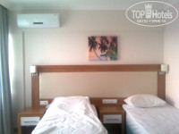 Отель расположен в Обе за Аланьей, напротив ужасного песчаного недопляжа с грядами камней в море. Если уж поедете, берегите себя, купаться можно только в одном месте между грядами камней, ночью купаться запрещено. По пляжу бегают крупные собаки, не очень чисто, мелкий мусор. Само море не очень чистое и не такое красивое, как за центром Аланьи. До центра Аланьи 5 км. В отеле два корпуса - с видом на море, но там сильный шум от дороги, и корпус за бассейном, там потише, но вид на отель и бассейн. Бассейн маленький, холодный, но красивый. Обязательно берите беруши, без них не заснуть.