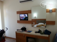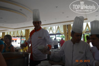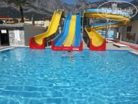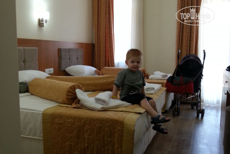 Отдыхали с 30.04 по 09.05.13, приехали втроем, с мужем и ребенком 2 года, в отель около 8 утра, нам предложили заполнить документы и сходить позавтракать. Зная, что заселение в 14.00 (такие правила везде) мой муж положил в паспорт 10 долларов, к 10 часам мы уже были в своем номере 1415, на 4 этаже с боковым видом на море и горы. Корпус параллельный лобби. Номер новый одна двуспальная и одна односпальная кровать, жк телевизор, туалет и душ чистый, кондиционером не пользовались. На первый взгляд территория меня не удивила, так как я с февраля облазила все сайты с поиском отзывов и фоток отеля. Было ощущения, что я здесь уже не первый раз. Но горы… Это что-то неописуемое, фото такую красоту не передает. Такое чувство, что до горы можно дотронуться рукой, стоит только пройти пару метров))) С погодой очень повезло, пасмурно было только в день отъезда, остальное время +30,32. Опишу завтрак в день приезда, решайте сами много это или мало. Яйцо вареное, омлет с колбасой и овощами, каша рисовая молочная, овсяные хлопья и различные хлопья для завтрака, молоко холодное и горячее, печеньки, вафли, палочки соленые, вкусная выпечка (булочки), разные виды варенья, мед, йогурт 3 вида, помидоры, огурцы, зелень, колбасы, сыры (домашний очень вкусный), суп, кофе, чай ,соки порошковые, чай в пакетиках, и заварной чай лучше всего)). На улице жарили безумно вкусные оладушки и яичницу, так же можно сделать самому тост. Я брала колбасу и сыр в зале ресторана, без соленого огурца тост оч.вкусный получился. Думаю ничего не забыла))) В обед и ужин прибавляются фрукты, сладости, рагу с мясом, сосиски, котлеты, салаты, супы, на улице обязательно что-то жарят на гриле. Открывают два стола: диет и детский. На общем столе для ребенка больше выбора. В течении дня можно перекусить фаст фудом, местными лепешками, с 16 до 17 мороженное. Из алкоголя пробовали только вино и пиво – очень даже приличное. Территория ухоженная, красивая. Детская площадка большая, новая, можно сказать, из-за нее я и выбрала этот отель, точнее, это был решающий плюс. Мини клуб работает с 10 утра, с перерывом на сон, но так как родители приехали отдыхать, измученные детки спали на шезлонгах(( Пирс новый, широкий. Море галечное, заходить лучше в тапочках. В море есть тропинка из гальки, а во круге валуны. Анимация супер, вечерние номера красивые, зажигательные танцы. Мы мало чего видели после 9 вечера, но все что зацепили боковым зрением, уходя с детской площадки спать, все понравилось. Детская дискотека умиляла, детки все бегут к аниматорам, танцуют))) Сервис на 5 баллов, обслуживающий персонал приветлив, улыбчив, доброжелателен. Уборка номера каждый день, мы просили не убираться ежедневно, а только брали чистые полотенца и шампунь. Официанты очень оперативно работают, если вы покушали немного и решили взять еще что-то в ресторане, предупредите официанта, что вы придете или оставьте кого-нибудь рядом с тарелками. Иначе вы можете прийти к пустому, чистому столу. Еще смешнее, если там уже будет кто-то сидеть со своей тарелкой))) Хамам 25 долларов не выходя из отеля, внутри оч.красиво. Там же вы будете менять пляжные полотенца (залог 10 долларов). На улице хай тур предлагает за 20 долларов, скажу сразу, мы там были, зашли, посмотрели, попросили вернуть нам деньги и ушли. Первое впечатление, что после такой бани можно попасть в больницу с кожными заболеваниями(( В це