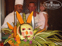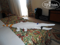 В номер мы зашли в 9-30, это не смотря на то, что заселение там как и везде с 12-00. Скажу честно, раз пять подходил на ресепшен, ну и конечно каждый раз говорил что готов отблагодарить за чуть раннее заселение. И все опять нормально, мы в прекрасном номере № 2225, на третьем этаже корпус № 2. Про корпуса немного, при заселении просите второй корпус НЕ ЧЕТНЫЕ НОМЕРА, это окно выходит с видом на бассейн с горками и на море. Сам номер хороший, большой, нам 4-ым тесно не было. Бар пополняли каждый день, белье если не просишь, то через 3 дня меняли, уборка номера так хоть каждый день, просто вешаешь на дверь табличку и все. Маленькие недочеты были в номере, но это не смертельно, сам все за 10 мин. устранил. Хотелось бы пока про номер пишу, выразить огромную благодарность уборщику МУХАМЕДУ. Настолько тактичный, вежливый, внимательный товарищ, всегда выслушает, что надо сделает или принесет, млолдчик просто. Такие штучки из полотенец делал... Мы конечно его несколько раз благодарили, где то доллар, где то шоколад для его ребенка и жены беременной. Вообщем спасибо ему огромное !!!