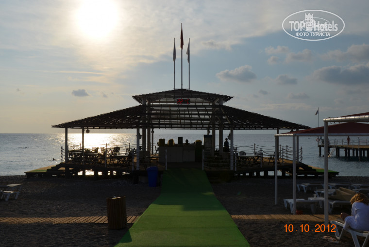мы отдыхали в октябре 2012 года. ездили как говорится в медовый месяц, свадебное путешествие) мы ездили с нашими друзьями, тоже молодой семейной парой. начну с того, что приехали в отель мы в 7 утра.а поселение около 12 дня,если не ошибаюсь. мы оставили на ресепшене символическую сумму, и нас поселили сразу, мы пошли позавтракали и на море собрались.а те,кто не давал денюжку при поселении ждали до 12. поэтому совет:если хотите быстро заселится, оставьте деньги на ресепшене... кухня понравилась,ели как все обычно:сначала много брали, а к концу путевки все меньше,так как не доедали того, что нагребали) очень понравилось множество других ресторанчиков на территории. если не успели в главный ресторан, можно всегда пойти в другой, голодными не будете. очень понравилось также шоу-анимации, которое проходило каждый вечер. понравилось, что в конце анимации все вставали и под песню no stress танцевали танец вместе с аниматорами) до сих пор вспоминаю эти движения) понравилось, что нас каждый день, с утра и до ночи развлекали аниматоры, водная гимнастика просто супер.