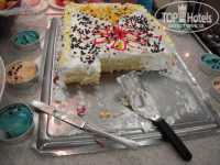 Питание не богато, но нормально. Удивило, что по утрам не жарят глазунью и омлетик только заранее приготовленный, а так всё как во всех отелях. На обеде - 2-3 горячих мясных блюда - баранина, телятина, индейка, курица, почти ежедневно рыба, салаты, овощи и травы. На ужине примерно такой же ассортимент. Однажды давали отварной язык и изумительное картофельное пюре.
