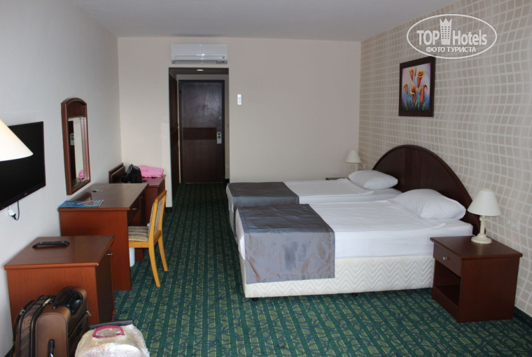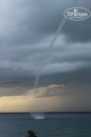 Прибыли в отель под проливным дождём. Разместили очень быстро, номер в основном корпусе, вид на море и бассейн. Номер устроил полностью, достаточно большой и чистый практически такой, как я просил в акции «Я еду в этот отель». Вместе с ключами от номера получили приглашение на ужин с директором. В тот день погода не радовала, видели смерч над морем. Из-за грозы несколько раз отключали электричество. На следующий день в номер доставили вино и фрукты.