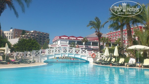 Дождь и холод был 2 дня...потом по мгновению волшебной палочки резко жара 35...ладно о погоде хватит, а то разогналась! Значит об отеле... Отель довольно очень приличный, большой и уютный.. Конечно это мое сугубо личное мнение, но после того как отель стал пренадлежать пегасу там одни наши соотечественники...У меня было впечатление что я нахожусь на курортах Краснодарского края, для полной картины не хватало только мужика орущего на пляже "Чурчхеллааа"))) Короче говоря мне больше нравится когда и немцы и англичане и русские в одной кастрюле) Персонал весь говорит очень хорошо на русском, сразу проявился деффицит в общении ломанным английским и жестами (как то скучновато) по русски шпрэхают все...Отель очень молодежный. Очень много пар с детьми. Для детей тоже полно развлечений и всяких потанцулек. Есть водные горки, конечно не ахти какие, но покататься можно. Аннимация прикольная. целый день возле бассейна то пляски, то жиротряски, аквааэробике, дартс, водные игры короче не соскучитесь. Лично я ни в каких мероприятиях особо не учавствовала, но традиционный танец возле бассейна после какой нибудь развликаловки со всеми вместе исполняла. Муж понятное дело грел попец, фоткал меня, пил пивасик, и расслаблялся.