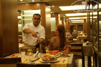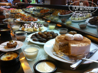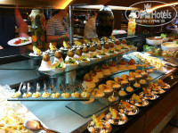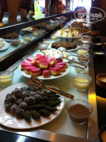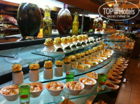 Питание не оставило равнодушной. Выбор огромный, особенно на ужин. На террасе готовили рыбу, индейку, куриные крылышки, в кастрюльках томилось ароматное рагу из курицы с овощами, запекались куры-гриль целиком, подавали красивые овощи и ароматный рис. И в самом ресторане всегда был большой выбор гарниров и основных блюд. Все было приготовлено с душой и очень вкусно. Никогда ничего не попадалось испорченного или прокисшего. Официанты на обед и ужин предлагают вино из бутылок. Советую попробовать вино из маленьких, стандартных бутылок, оно лучше по вкусу, особенно красное. Очень понравились десерты в виде запеченных в сахарном сиропе яблок с корицей, айвы и тыквы с грецким орехом. Хочу отметить, что разнообразие десертов в конце апреля было больше. В мае, когда людей в отеле прибавилось, десертов стало меньше, точнее их видов. А жаль...Зато появились арбузы и дыни, что тоже порадовало. Из а ля карт ресторанов понравился Дальневосточный, хотя роллы оказались неправильными, остальные блюда выглядели удачными и вкусными. Очень понравилось мороженое, запеченное в тесте!!!