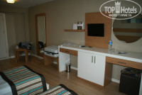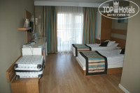 Номер был на вилле, с красивым видом на море, № 7173 (2 этаж), если кому-то захочется попасть именно туда. В номере просторно, хорошая мебель и приятная цветовая гамма в оформлении (песок, молоко, шоколад, бирюза) . Очень хорошая сантехника, все исправно работает. Полотенца, тапочки отсутствуют. В холодильнике 1 литр воды. Уборка качественная, горничная Фатма старалась на все 5,в туалете всегда был запах свежести от моющих средств, а на постели красивые лебеди и бабочки с лепестками свежих цветов.