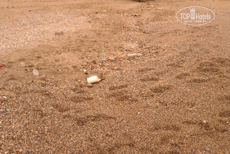 Пляж небольшой, но вроде всем места хватает, по приезду был супергрязный (даже валялась дохлая крыса), все убрали, после того как я все демонстративно сфоткала (а может просто убрали). Вход в море плохой, особенно для маленьких детей, СОБСТВЕННОГО пирса у отеля НЕТ!!!