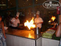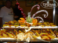 Шеф-повар супер. Снова блюда радовали не только желудок но и глаза. Оформление блюд - все по-новому. Кое что из блюд добавили в меню (это я все с прошлым годом сравниваю). Тематические вечера проходили красиво. Конечно если ты не успел к началу ужина некоторыми шедеврами оформления шев-повара и команды полюбоваться не удавалось. Места находили свободные всегда (это я про ужин) т.к. в обед и на завтрак с размещением вообще нет проблем. Правда в первый день приезда на ужин долго не могли найти свободное место, но это было один раз. Сын полюбил днем бегать в итальянский ресторанчик делать бутерброды с котлетками. Я была в восторге от их пиццы. Ресторанчик открыввается с 12 дня и днем работает как все включено, вечером а-ля карт. В остальных даже и не пыталась побывать, т.к. боялась что к концу отдыха не войду в свою одежду. Мороженое один раз в день бесплатно тоже выдавали возле итальянского ресторанчика. Вкусное.