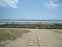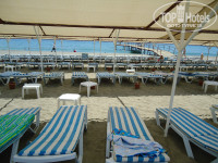 Плаж простой - с камушками и лежаками, которые лучше с утра занимать. А купаться с соседнего плажа (левого) удобнее - там заход нормальный в море.