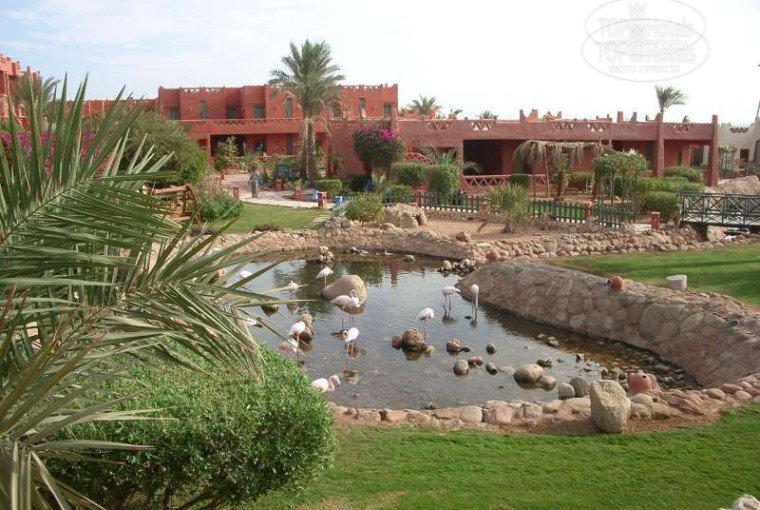 Отель выполнен в африканском стиле. Территория большая, но не зеленая. По территории протекает пресноводная лагуна, в которой живут живые фламинго. Есть много горок, но бассейн там не подогревается. Также на территории отеля есть свой зоопарк (платный), в котором множество зверей и птиц. Пляж песчаный, вход в море кораллы, есть понтон.