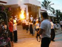 Отдыхали первый раз с анимацией - нам очень понравилось, хотя опять же, знающие люди говорили, что раньше анимация была более живой. Жена постоянно ходила на водную аэробику, танцы живота. Попробовала ходить на степ аэробику - ей степы показались низкими - больше не ходила. Вместе постоянно участвовали в "играх у бассейна". Я же, несмотря на то, что был в курсе, не взял кеды играть в футбол - не верил, что много желающих - и зря - стабильно набирали 2 команды. Я сыграл одну игру и выбил палец - на этом мой футбол закончился и в основном я плавал и прыгал с пирса. Под начал ходить и играть в волейбол - там среди таких же профанов, как я, попадались настоящие професионалы.