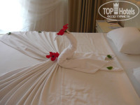 Начну с номера. За небольшую (50) дополнительную плату в паспорте на ресепшн нас заселили в Club Room - один из двухэтажных бунгало - вместо основного корпуса - хотя общались с туристкой, которая меняла как раз бунгало на основной корпус - ей показалось там удобнее. Мы были только в бунгало - сравнивать не с чем. Просторный номер с диванчиком - на котором сидел только один раз - для фото ) кучей ящичков в столе и тумбочке, шкафом - в общем было куда распихать всякие мелочи, которых была масса. Чистая ванная-душ с магнитными дверцами - жена в первый раз запаниковала, что не может их рассоединить ). Мы жили на втором этаже - поэтому у нас был балкончик. Номера на первом этаже имеют же каждый свое крылечко со столиком.