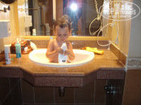 Номер.Кровати большие,я к стенке придвинула и тесно не было вдвоем с дочкой.И как раз над нами кондей на нас ни попадал.Удобно расположен ,можно использовать при ребенке.Есть банкетка большая у зеркала.можно подставить для страховки.Кроваток детских ,видимо,очень мало.Ни дают.Санузел большой.В душе много места,я ее рядом ставила на полотенце и она играла на скамейке,пока я мылась.Душ прикручен к стене на верху и отдельно для ног с низу.Кто-то везет с собой ковш чтобы мыть ребенка.Я брала ее на руки и вместе споласкивались.