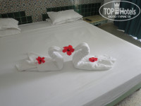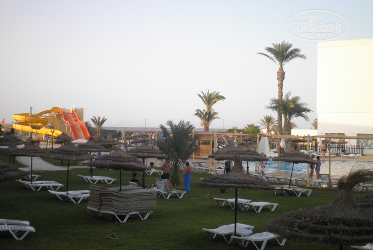 Были в Отеле в августе 2012 года. Первое впечатление когда зашли просторный и красивый холл!! Завели нас всех в Лобби-бар и сказали ждать размещения. Размещение в 14,00, время было когда мы приехали около 12,00. Но правда здесь они нас разместили быстро ждать не заставили через 30 минут мы уже были в номере и разбирали вещи. Еще и успели на обед.Так что за быстрое размещение отелю спасибо!! Еще отдельное спасибо отелю за бонус)) Мы оплатили двухместный номер с видом на сад! Но нам как молодоженам (тур агенство оказывается поставила галочку что мы молодожены)дали двухместный с видом на море!!! Питание в отеле довольно разнообразное рыба, курица, осьминоги, свинина, говядина, часто бывал кролик... Гарниров и закусок тоже было много. Часто делали мясо на мангале, но народ сразу такую очередь выстаивал что мы один раз постояли и решили что и так достаточно мяса))))) Очень вкусный пекли хлеб. Меня особо порадовал как сладкоежку сладкий стол выбор тортиков и прожженных был хороший. Я так все и не перепробовала пока отдыхали. Фрукты не радовали были только Арбуз, дыня,яблоки и виноград. Но это все не сразу обычно чего то два бывало например арбуз и яблоки. Соответственно то что не съели вечером перекачевывало на следующий день в закуски. Супы всегда было два на выбор. каждый день новый выбор! Голодными точно не были. С утра до вечера можно было где то поесть с 7-10 завтрак с 11-14,00 на открытой террасе можно было перекусить выносили еду салаты , соски и фаст-фут Потом с 14-16 обед. После обеда всегда пекли блинчики пончики, раздавали мороженное., потом с 18,00-20,00 ужин. И еще можно было пойти в 22,00 до 24,00 поесть в ресторан открывали выставляли так же еду ту что осталась сладости чай, сок. Вообщем есть можно целый день. И в принципе не плохо если не придираться. Единственным минусом было то что август много людей было и постоянно не хватало ложек, вилок и чашек. Но старались быстро мыть и подносить!! Обслуживание в отеле если платишь, то хорошо))) Убирают каждый день(заправляю пастель, меняют полотенца. полы за 10 дней мыли вроде 3 раза. (но этого достаточно). в номере сейф, кондиционер. холодильник приносили воду в бутылках оставляли в холодильнике. Мы оставляли деньги каждый день делали что-то из полотенец и носили цветы!В баре тоже первые 3-4 дня как называется прикормили барменов давали деньги и были самые вкусные коктейли))))Но вообще они любят что бы сними вежливо разговаривали.Но это мне кажется нормальное желание . Как ты к ним так и они к тебе!!! Территория вроде не маленькая, но через 3 дня ходить негде уже)))) По поводу моря море чистое, прозрачное песочек беленький и мелкий. Но та же проблема что и с вилками мало было шезлонгов. Еще в августе мы были с 9 августа по 19 августа были дни когда медуз было много и мы даже не заходили в море. Сильно обжигают они как кипятком. мелкие их почти не видно. Поэтому когда было много медуз купались в бассейне. Территорию, точнее выход к морю в 22,00 закрывали. Анимация на 3 иногда интересные шоу показывали смотрели с удовольствием. А иногда так лишь бы отчитаться(( В начале для детей каждый день одно и тоже... но детям нравиться. По поводу экскурсий мы ездили только на катере есть морских ежиков. В принципе интересно но ничего такого особенного. В город так и не поехали у них был Рамадан и мы что-то не захотели ехать. мы там ходили На Телассо-терапию. Не деше