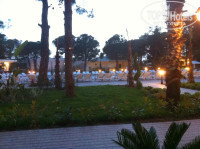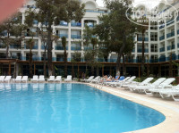 достаточно большая, зеленая, очень ухоженная, есть два достаточно больших бассейна, около одного (который с 2-мя горками) проходит анимация, там постоянно много народа) другой побольше, здесь народа уже меньше) Хочу отметить, что вода в бассейнах хлоркой не пахнет! Пляж большой песчаный, местами мелкая галька, море чистое, голубое!!! На пляже также проводится анимация и есть бар, где можно перекусить и выпить прохладительные напитки.