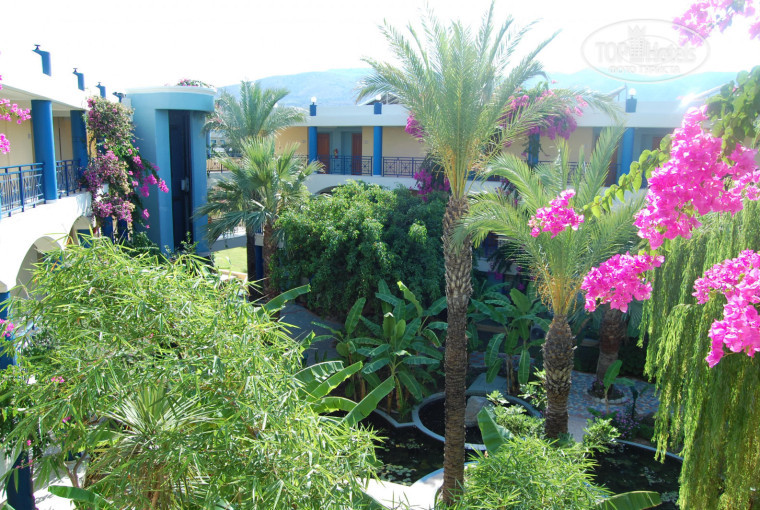 Территория очень ухоженная, много зелени, всевозможных цветов, кустарников и пальм. За территорией отеля неуютно, голо и сухо. Территория как оазис. Везде очень чисто.