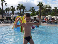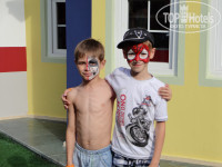 Отдельный респект девочкам из детского клуба - Пегги. Викуся – миленькая маленькая девочка, от которой мой сын не мог оторваться при прощании, Кэт, Катюша, Мирослава, и др. Всех не упомнишь, очень трогательно прощаются с каждым ребенком, дарят какой-то памятный подарочек. Такое внимание детям не уделят ни в одном детском саду или школе. У них с 10 утра расписание, поделки своими руками, разукрашивание футболок, правда, платно 20 дол., разукрашивание лиц в разных персонажей, еле уговорили смыть вечером маску человека паука. Развлекательные игры с вручением грамот (вечером на детской дискотеке), мультфильмы, мороженное, соки и йогурты. В общем, ребенка (7 лет) оттуда вытащить не могли даже на море. Их водят и на обед и на ужин. Прекрасное детское меню, которое понравилось и мне. Некоторые общие блюда несколько перченые.