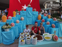 По поводу питания: нет слов вообще, за всю неделю мы не успели перепробовать все представленные блюда. Все очень и очень вкусное, настолько разнообразное меню, что даже очень привередливые могут найти и себе что-нибудь по вкусу. Отдельно о сладком - его столько, что у мены большая часть трапезы отдавалась сладенькому. Можно писать много, долго и все хорошее. Голодным там точно не останешься, весь день на территории прекрасные турецкие лепешки, Айран – кисломолочный напиток, который очень хорошо идет день на четвертый, когда уже на еде смотреть не можешь, но ешь, ведь не все попробовал. Итальянский ресторанчик, так что если не успели в основной ресторан – не беда.