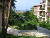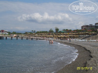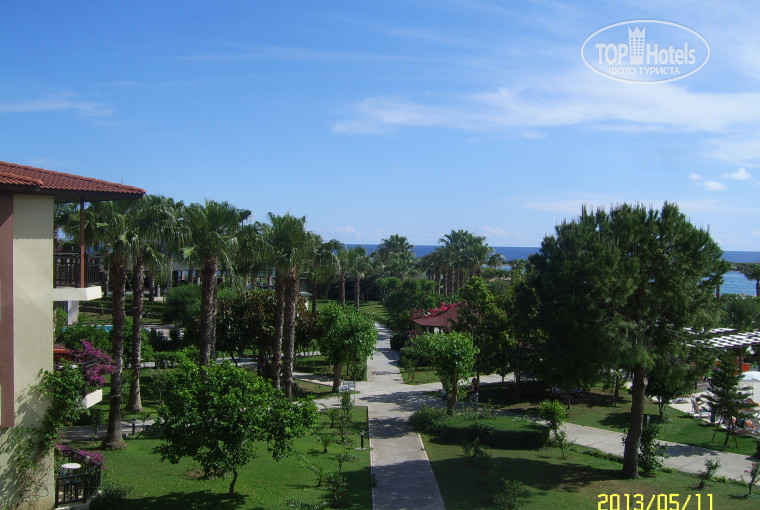 Отель замечательный! Неделю назад вернулись оттуда, но все еще под впечатлением прекрасного отдыха. Начну сначала. Отдельное спасибо туроператору "Санмартур". Организация тура отличная. Никаких замечаний. Все вовремя, автобусы комфортабельные, гиды хорошие. Особенно понравился Ахмет Аксай, с которым ездили в аквариум. Но вернемся к отелю. Приехали около 11 часов утра. Нам предложили оставить вещи на ресепшен и пойти позавтракать. Когда вернулись с завтрака, нам сразу выдали ключ от номера и проводили в наш корпус. Нам достался "Тюльпан", номер 2220. Вид с балкона - прекрасный! Парк, бассейн, море. Сразу хочу сказать, что весь отель очень красивый. Много цветов, все идеально ухожено. Много живописных уголков. Красивы и холл, и рестораны, и бары. Номер нам понравился. Чистый, уютный. Мебель стильная. Большой телевизор на стене - плазма. Много каналов. Наверное, около 20. Русскоязычных штук 7. Есть холодильник-бар. Но мы им не пользовались, как и сейфом. Все в номере работало. Вечером, когда задергивали шторы и включали все светильники было особенно уютно. А по утрам распахивали дверь на балкон и встречали солнце, ветер, запах моря. По вечерам, после представления дочка укладывалась спать, а мы с мужем подолгу сидели на балконе за разговорами с бутылочкой коньячку из дьюти-фри. Теперь о главном для каждого русского туриста - о еде. Еды в этом отеле не просто много. Она повсюду. В основном ресторане на завтрак, к примеру6 яйца, сосиски, булочки, три видав каши, пюре, йогурты (5 видов), хлопья, мюсли, фрукты, сыры, ... На обед - закуски из овощей, салаты, гарниры (все по нескольку видов) супы (каждый день разные. И прекрасный, настоящий наш борщ! Блинчики, омлеты, гриль из разных частей курицы, рыба, шашлыки из баранины... На улицу было выходить страшно оттого, что снова придется есть. Снек - бар угощал гамбургерами, хот-догами, итальянский ресторан - пиццей и булочками с кунжутом, тут же у бассейна - гюзлеме с разными начинками. Это вообще отдельная песня!!!!! И пиво - оно лилось рекой. Очень хорошее пиво! Вино местное, по-видимому сухое, тоже весьма недурно. Белое не очень понравилось, но это дело вкуса. Виски конечно, не "Джек Дениелс", но сойдет. В общем, хотелось попробовать все. А десерты на ужин!!!!! И бисквиты, и муссы, и суфле, и торты, и клубника со сливками. Я в жизни столько не ела!!! Пляж прекрасный. Большой, чистый. Есть пирс, с него классно было нырять в море. Каждый день кормили рыбок, которые живут под этим пирсом. Читала, что эти рыбки кусаются. Нам как-то видимо, не повезло - никто нас ни разу так и не укусил. Мне понравились зонтики на пляже - они покрыты сухими ветками пальмы и от них классно пахнет сеном. Лежаков и матрасов хватало всем. Этот отель очень удобен для тех, кто приезжает с детьми. Для детей там предусмотрено все до мелочей. Причем для детей самого разного возраста. Начиная с грудничков. Есть где погулять, позагорать, бассейн для малышни есть, для тех кто постарше - водные горки. Аниматоры-девочки молодцы, целыми днями с ребятишками возились. А вечером для малышни каждый день мини-диско! Моя дочка с удовольствием там танцевала. Сейчас дома включает музыку с той дискотеки и перед зеркалом танцует. В общем, все супер!!!!! Это замечательный отель!!!!!