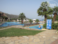 Отдыхали с 23 по 30 мая 2013 г, я+муж+ребенок 2 года. Приехали ночью,заселили быстро,Номер 212 (на первом этаже), рядом с рестораном и бассейнами, очень удобно-все близко. В номере был ужин (помидоры, огурцы, колбаса, сыр, хлеб, яблоко, апельсин, салат). Номер сразу понравился,посторонних запахов не было,чисто, уютно. Постельное белье белоснежное, хлопок с обработкой,на ощупь как шелк. В номере была детская кроватка, очень удобная, как манеж. Из посуды: чашки, тарелки, кастрюля, сковорода, дуршлаг, половник,салатница, приборы. Моющее средство и губка стояли у раковины. Муравьи были, но очень мало и они совсем не мешали. Кондиционером не пользовались, т.к температура в номере была для нас комфортная, прямое солнце почти не попадает и занавески двойные:один слой ткань обычная, а второй слой не пропускает свет.